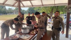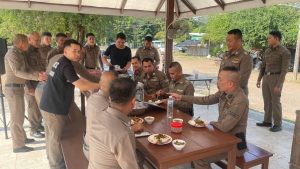 พ.ต.อ.สมชัย มงคลวงษ์ ผกก.สภ.บ้านโคก พ.ต.ท.เผด็จ เสนารัตน์ รอง ผกก.(สอบสวน) ฯ พ.ต.ท.ชูชาติ แก้วเรือง รอง ผกก.สส.ฯ พ.ต.ท.สมพงษ์ ทัดเศษ สว.สส.ฯ พ.ต.ท.ภูวดล จันทร์อำไพ สวป.ฯ พ.ต.ท.สุริยะ มิสา สว.อก.ฯ พร้อมข้าราชการตำรวจและแม่บ้านตำรวจ สภ.บ้านโคก