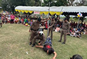 – บรรยายให้ความรู้และฝึก กรณีบุคคลคลุ้มคลั่งมาตรการ “หนี ซ่อน สู้” (ยุทธวิธีการใช้ไม้ง่าม)